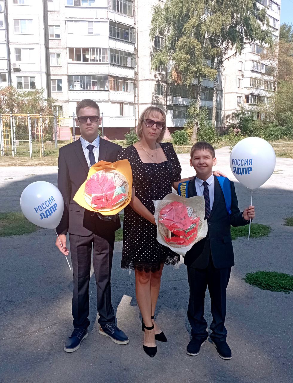 Ирина Дудорова поздравила с праздником одноклассников своих детей, вручив им подарки от ЛДПР и пожелав успехов в учёбе. К слову, эти школьники - активные волонтёры, которые участвуют в сборе гуманитарной помощи не только для участников СВО, но и для детей из малообеспеченных семей, и жителей регионов, пострадавших от обстрелов.
