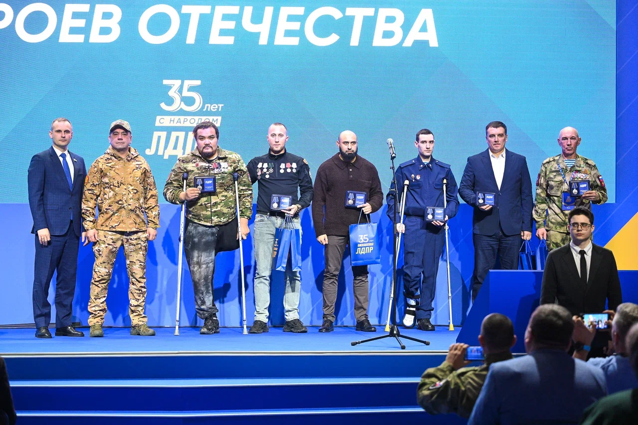 На ВДНХ в первый день работы юбилейной выставки «ЛДПР: 35 лет с народом», посвященный героям Отечества, прошла торжественная церемония награждения защитников Родины и встреча с участниками СВО