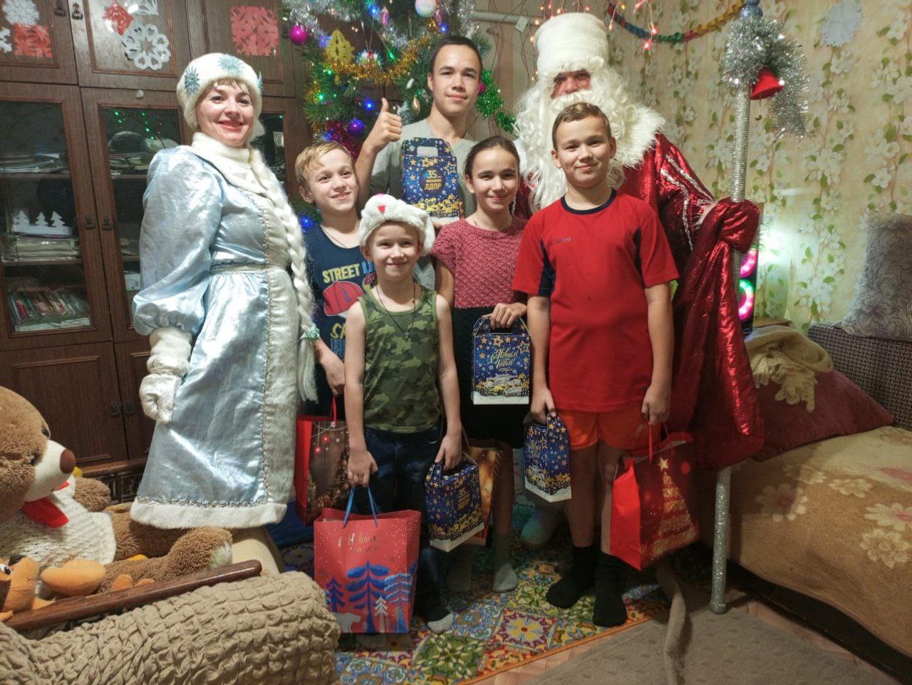 Так, например, набор сладостей от Леонида Слуцкого получила многодетная семья из Панино.