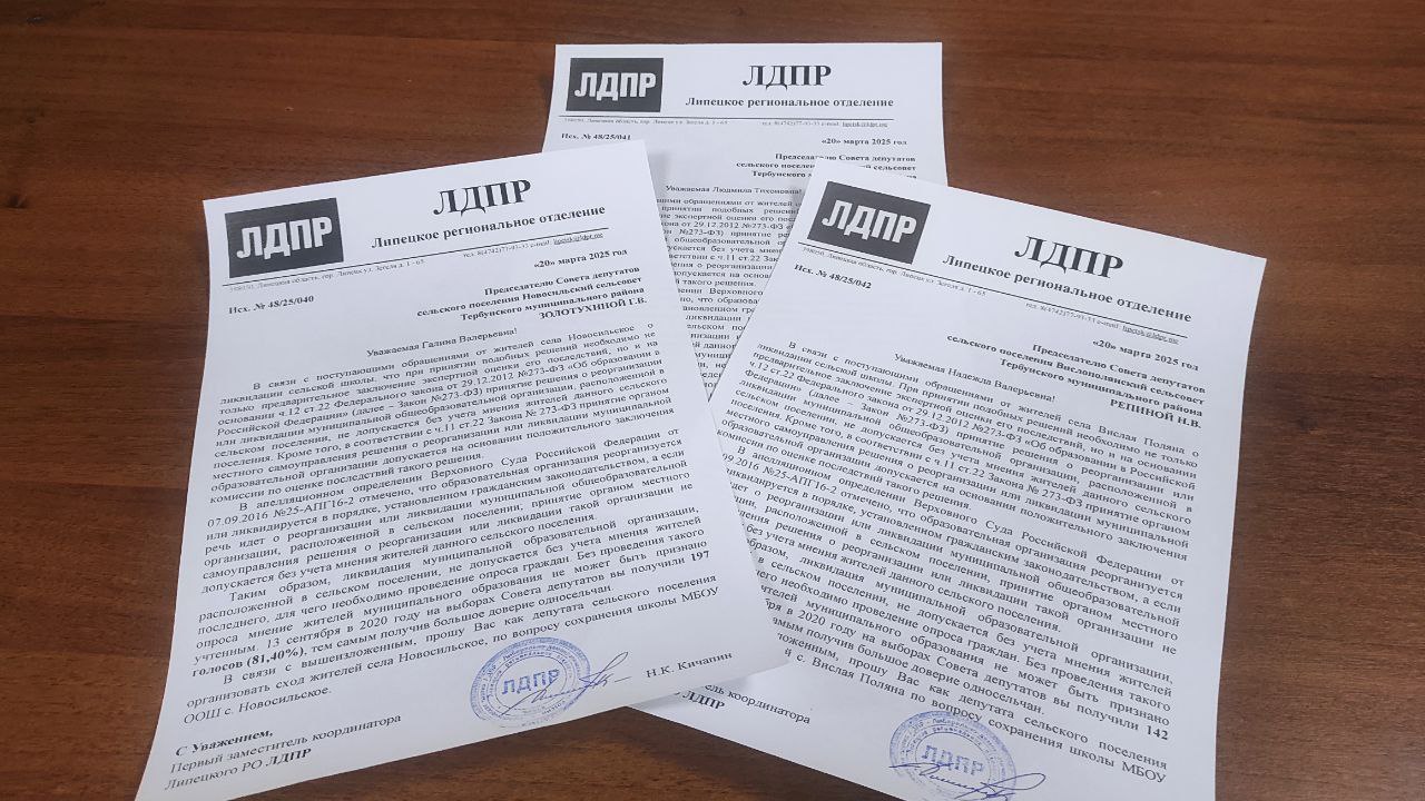 Заместитель координатора Липецкого регионального отделения ЛДПР Никита Кичапин направил запросы председателям сельских Советов с предложением немедленно инициировать публичные слушания по вопросу сохранения школ.
