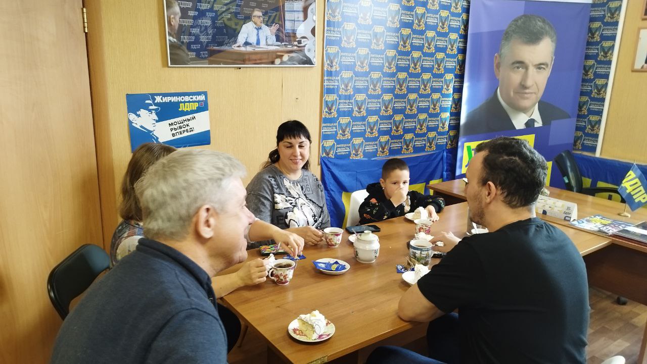 В штабе ЛДПР принимали дорогих гостей — юного липчанина Матвея и его маму Татьяну Муковниных.