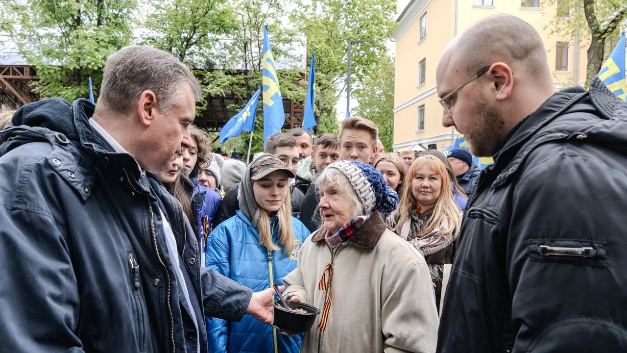 По окончании своей речи лидер ЛДПР вручил два партийных билета военным корреспондентам, которые работают на передовой и беспристрастно освещают все события специальной военной операции. После чего Леонид Слуцкий угостил ветеранов ВОВ и гостей гречневой кашей и чаем.